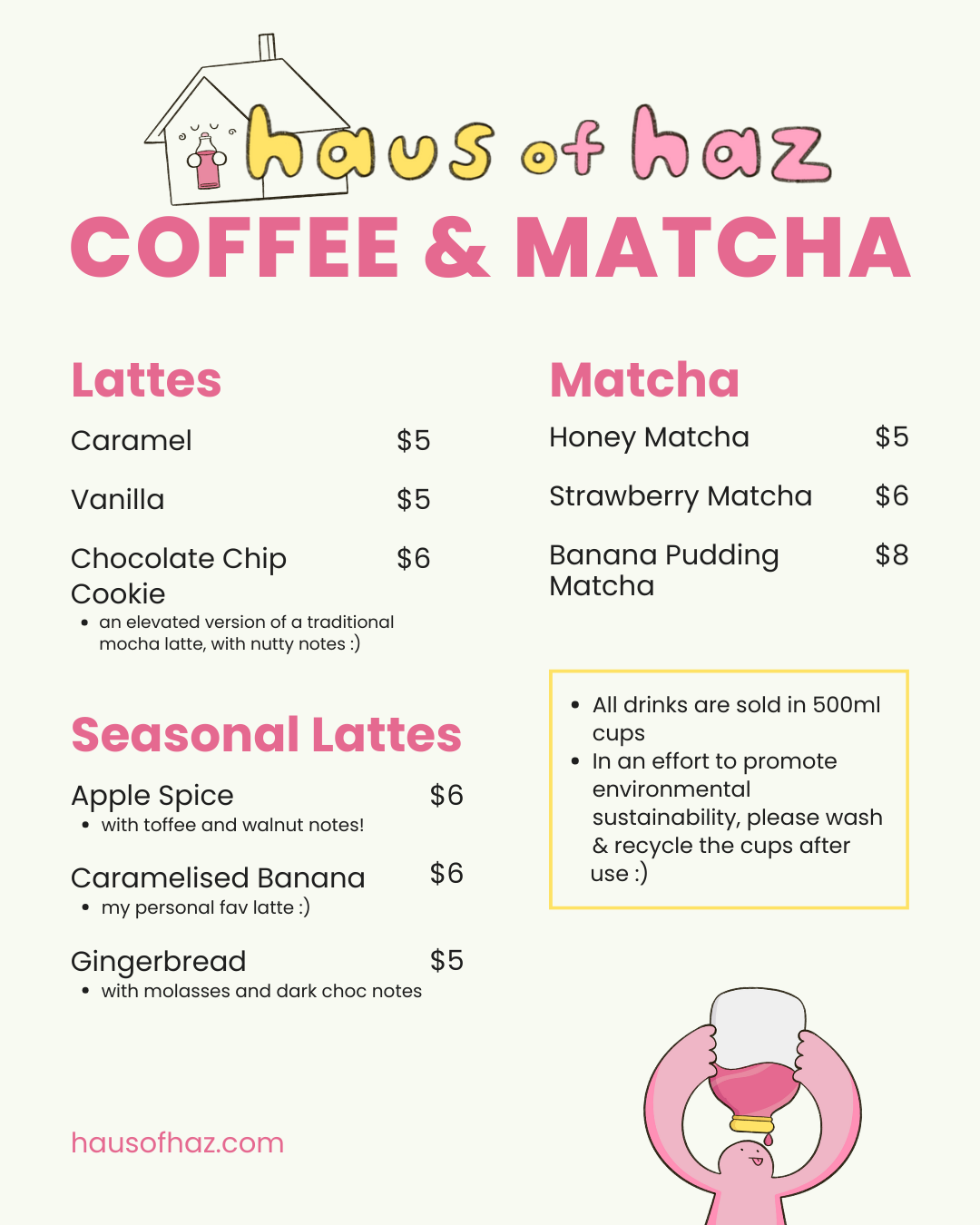 All hausofhaz matcha drinks are made using Niko Neko Matcha Powder. If you have any other matcha powder recommendations, please let me know!